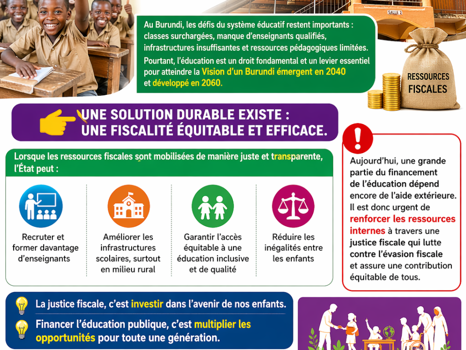 📢 Fiscalité équitable = Éducation de qualité pour tous au Burundi 🇧🇮📚