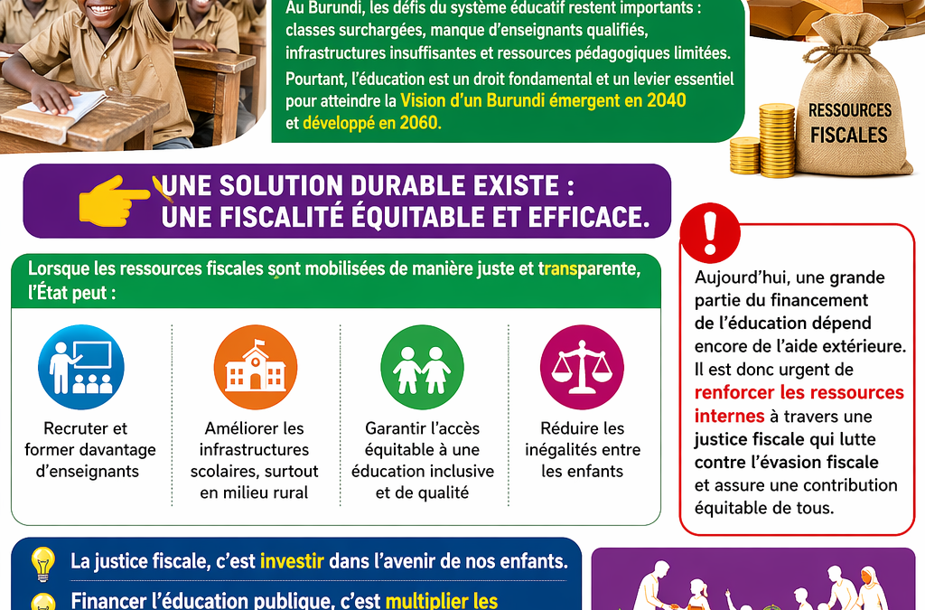 📢 Fiscalité équitable = Éducation de qualité pour tous au Burundi 🇧🇮📚